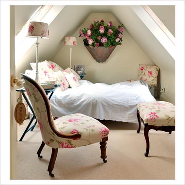 A tetőtéri háló...gyönyörű...az a rózsás anyag! Meg a fehér ágynemű...